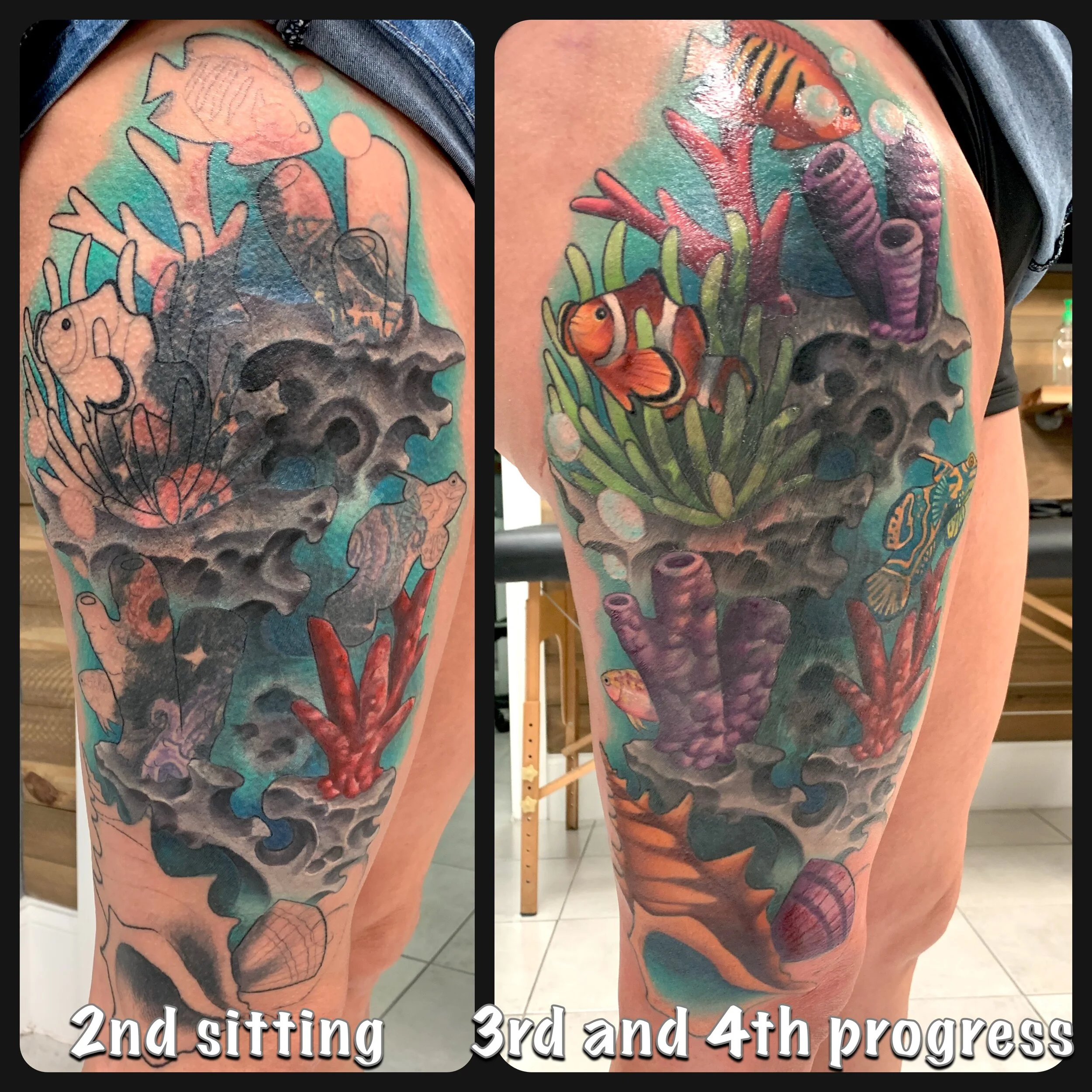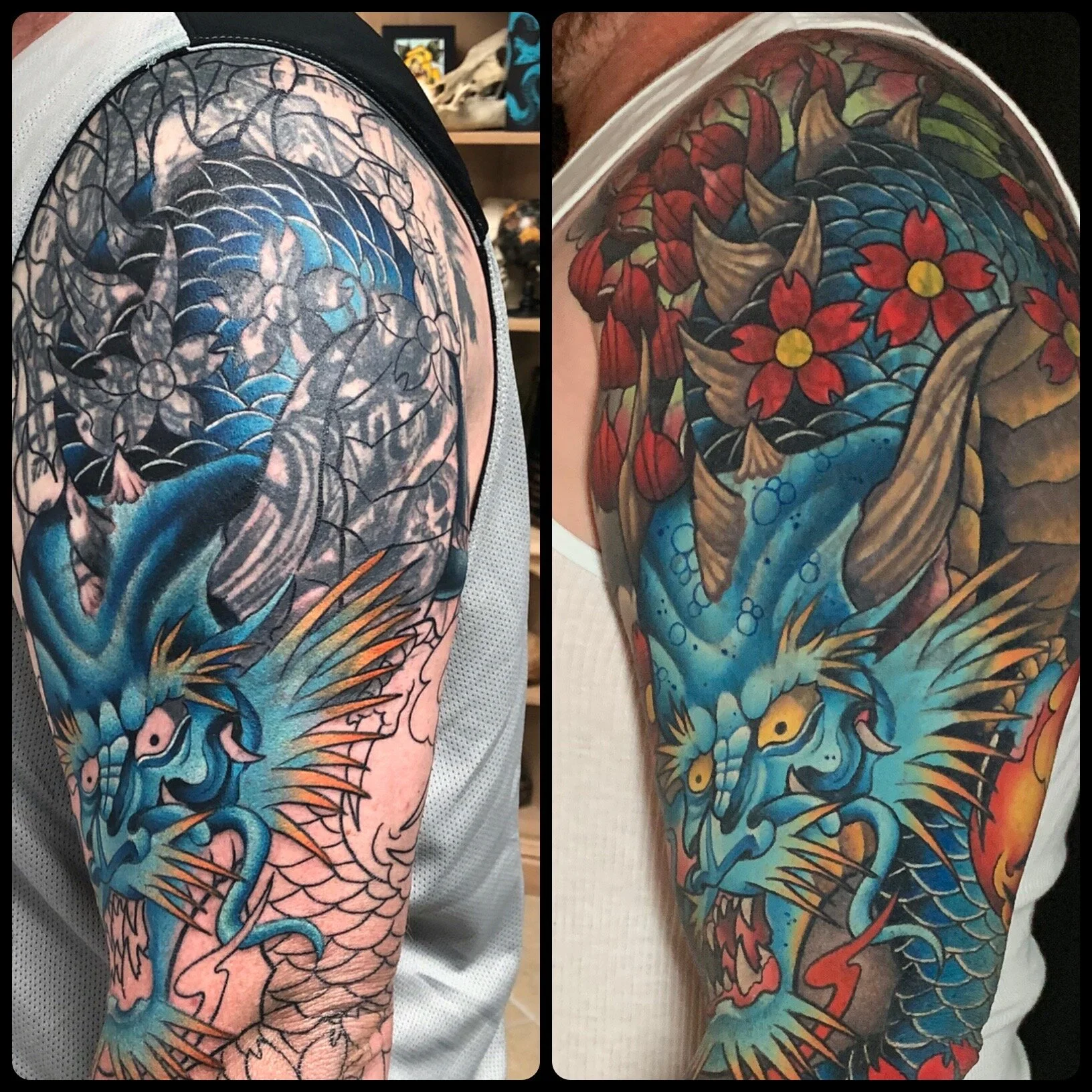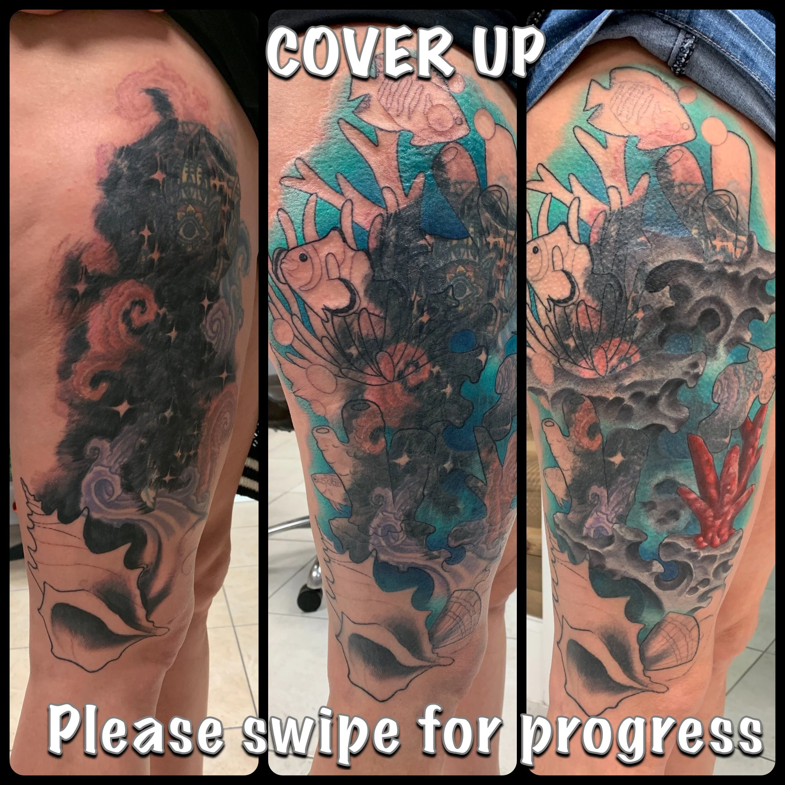 I do cover ups in full color ONLY. Black and grey generally does not cover unwanted tattoos well because grey tones and softer greywashed blends are usually not dark enough to cover old tattoos. You have a little more leeway with colors and dark shading.