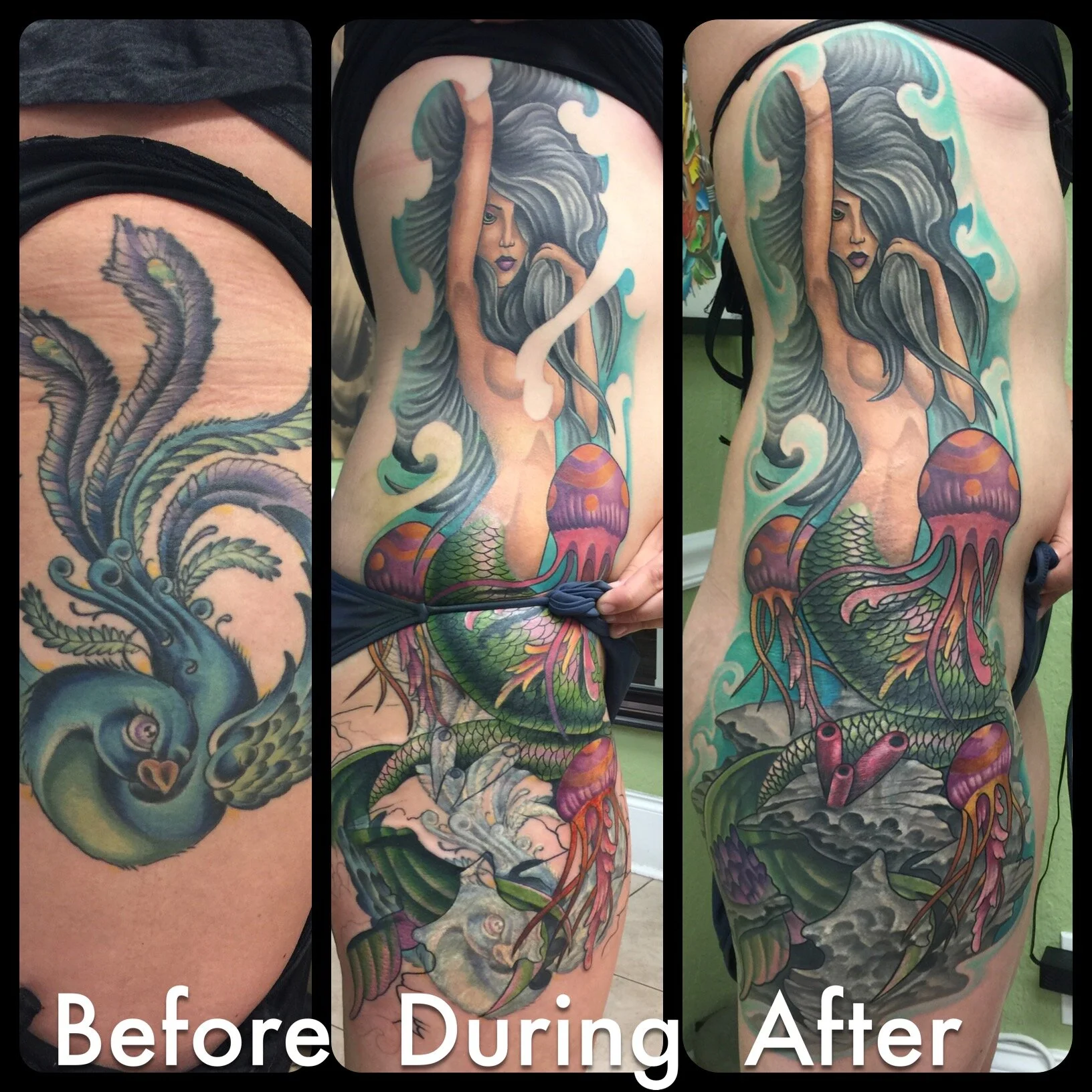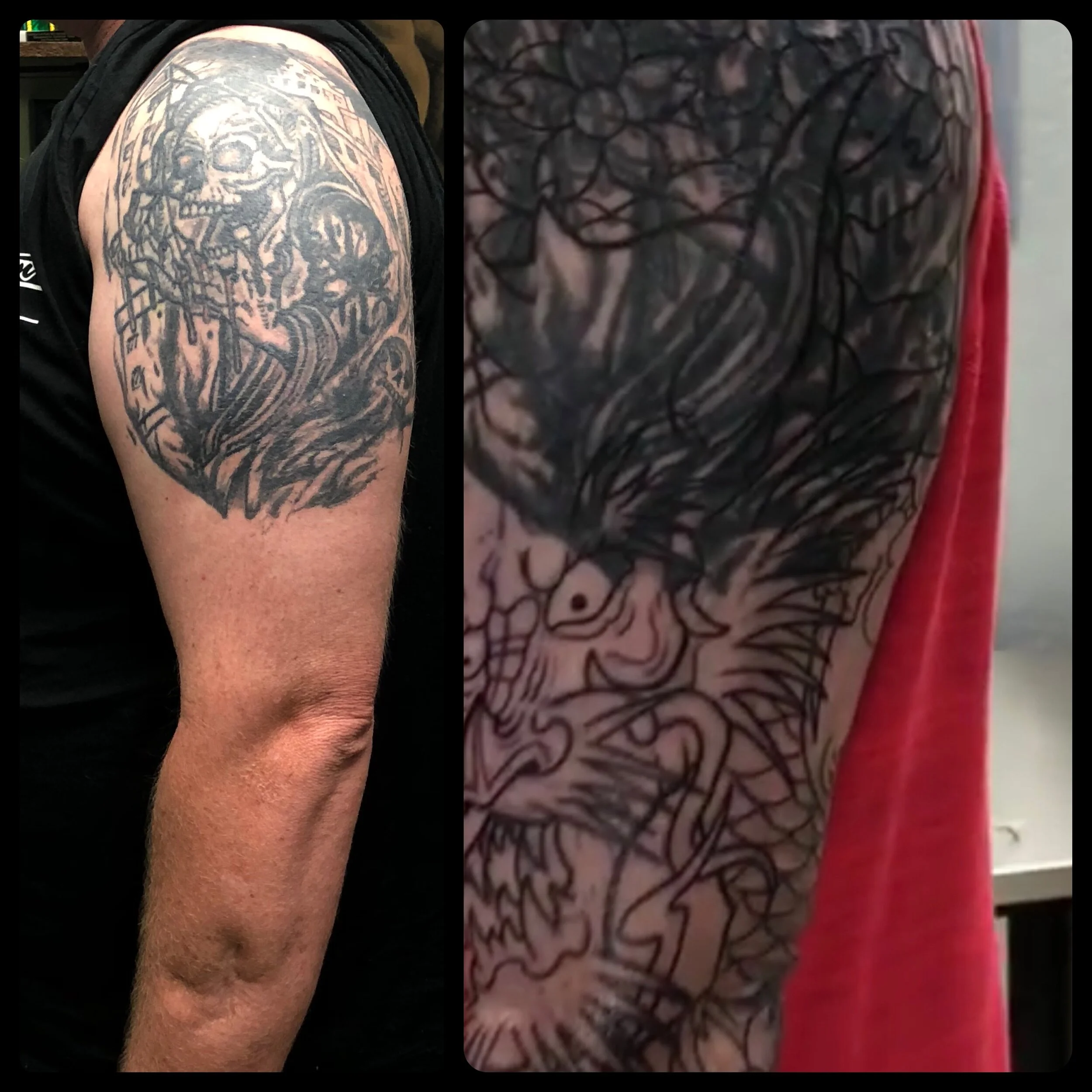 Because of the challenging nature of cover ups, I only take them on if I have full creative freedom with them. This does not mean that I won’t take your idea into consideration. I only set this stipulation because I have been doing these types of projects for most of my career and have learned what does and does not work and have developed a method for the way I do coverups to yield the best results. That being said, here are some things you should consider when we discuss your cover up project: